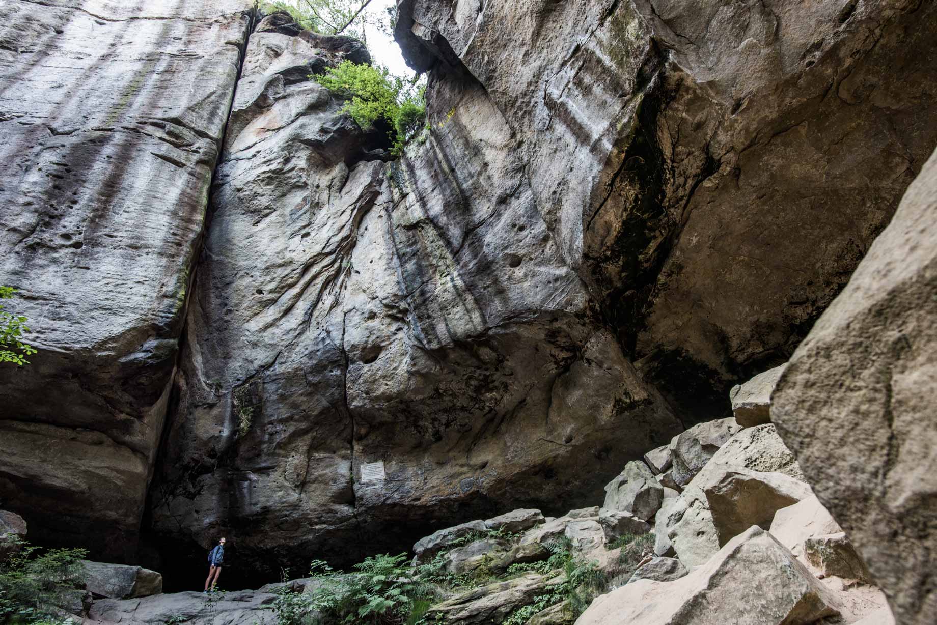 Ja, das ist es, was die alten Romantiker das Erhabene nannten, dieser Kitzel des Bedrohlichen, dieses Gefühl der Ohnmacht gegenüber der Natur. Dieses Erhabene, das im Zusammenspiel mit dem Schönen das Malerische ergibt, haben sie in der Sächsischen Schweiz gesucht und gefunden. Und hier und jetzt, an der Gautschgrotte, mutterseelenallein an einem Mittwochmorgen im Juli, können auch wir es spüren. Für das Urlaubsmagazin des Tourismusverbandes Sächsische Schweiz produzieren wir mit Model Jessica eine Fotostrecke zum Malerweg Elbsandsteingebirge, genauer: von seiner dritten Etappe. Es ist eine der weniger bekannten und frequentierten Etappen des legendären Wanderwegs. Und es ist eine Etappe der Überraschungen, der Entdeckungen und unerwarteten Wendungen.
