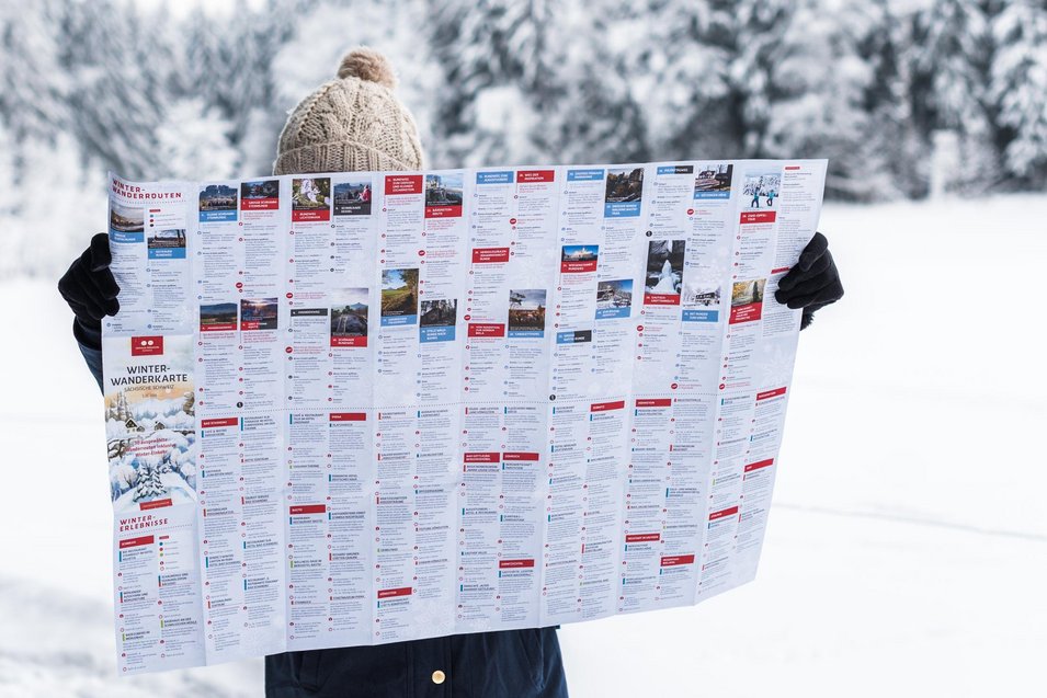 Wandern im Winter? Noch vor einigen Jahren war das auch in der Sächsischen Schweiz eher unüblich. Die Bergbauden waren so geschlossen wie die meisten Unterkünfte. Und die Wege blieben zwischen Spätherbst und Frühling weitgehend unberührt. Das hat sich geändert. Immer mehr Stadtflüchter entdecken das Winterwandern in der Nationalparkregion als Energiequelle, als aktive Entgiftung für den reizüberfluteten Geist. Stille, Klarheit, Einsamkeit: Davon gibt es in der winterlichen Sächsischen Schweiz im Überfluss. Die neue, offizielle Winterwanderkarte zur Region empfiehlt 30 besonders schöne Touren. Wir haben für eine Fotoreportage eine davon getestet.